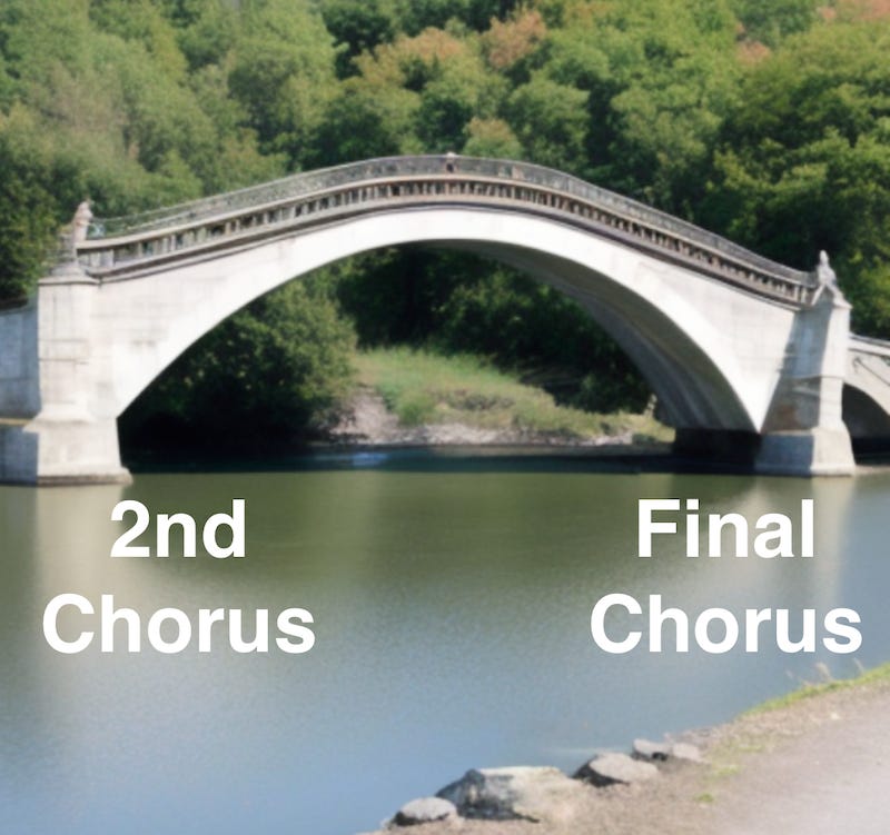 Bridges often introduce a new melodic, harmonic or rhythmic element which builds anticipation for the song’s finale.