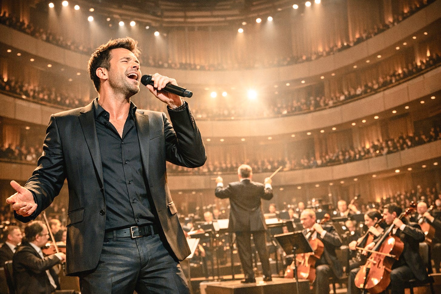 Singer with orchestra and pop singer made with Microsoft Copilot